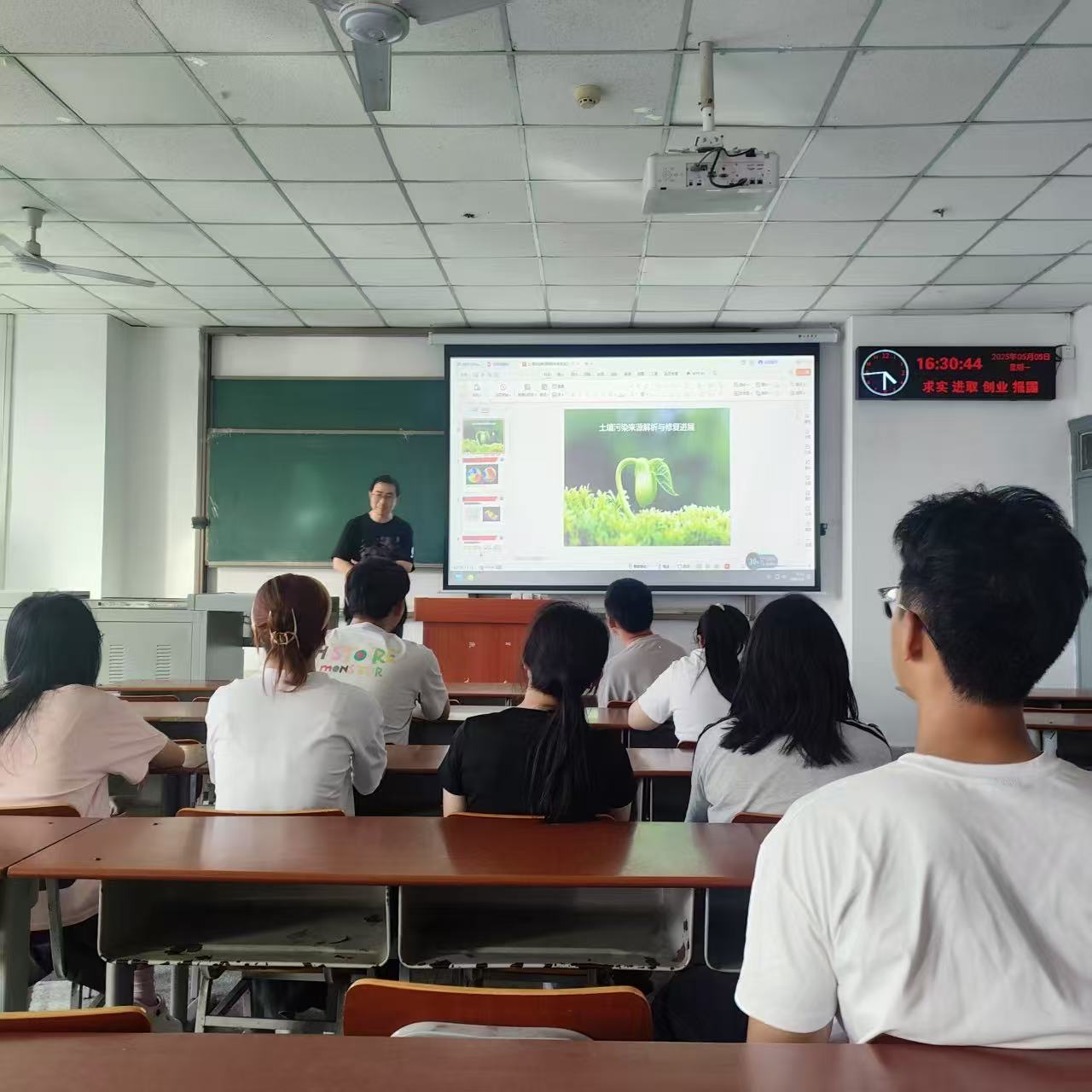 在科研成果分享环节,主讲人结合学院在土壤污染领域的最新研究进展,展示了团队在污染物来源解析、修复技术开发等方面积累的基础数据与重要成果。他特别提到多项已转化为实际应用的治理技术,激发了学生对学科前沿的浓厚兴趣。讲座尾声,主讲人简要介绍了科技论文撰写的实用方法,从选题设计、数据整理到论文结构优化、期刊投稿,提供了全流程指导,为学生未来的学术研究指明了方向。
