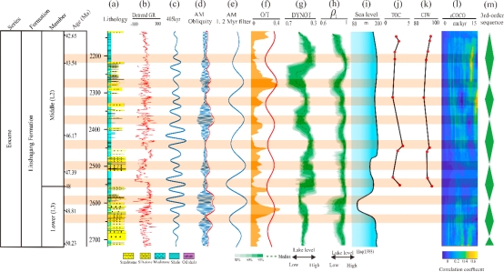 本研究采用时间序列分析法、沉积噪音模型对我国南海北部湾盆地乌石凹陷早-中始新世进行旋回地层分析,建立大陆边缘湖盆湖/海协同演化关系及有机质富集模式。研究认为大陆边缘湖盆湖泊水位与同期海平面呈现明显同相关系,表明含水层型海平面变化假说在温室背景下可能无法解释全部的海平面和湖平面的关系。与中高纬度相比,低纬度地区同样存在1.2Myr长斜率周期信号,且在百万年尺度上通过低纬度与中高纬度之间的热量和水分的供给关系影响湖平面变化及有机质富集。该研究为低纬度地区始新世早中期温室气候背景下斜率控制亚洲古湖泊有机质富集提供了证据。