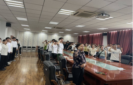 会议严格按照预备党员接收大会流程进行,会议第一项议程,与会成员全体起立,宣誓入党誓词,开云官方网页版官网研究生党支部预备党员接收会议在庄严肃穆的宣誓声中正式拉开序幕。