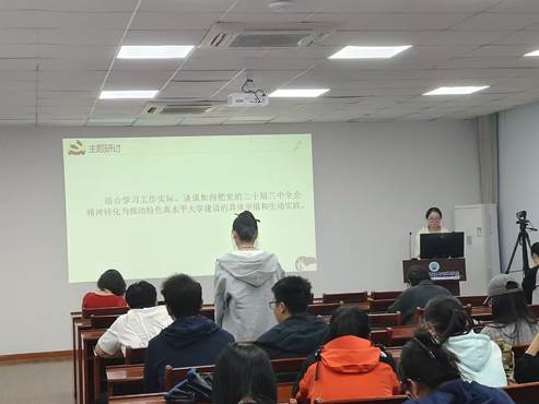 首先全体党员起立重温入党誓词,并进行党章的诵读,时刻谨记要以马克思列宁主义、毛泽东思想、邓小平理论、“三个代表”重要思想、科学发展观、习近平新时代中国特色社会主义思想作为自己的行动指南。随后进行理论学习,习近平总书记在中共中央政治局第十五次集体学习中时强调“贯彻落实新时代党的建设总要求 进一步健全全面从严治党体系”,同时警示我们要坚持“融入日常、抓在经常”,把党纪学习教育成果持续转化为推动高质量发展的强大动力。 接着进行了主题研讨,就“结合学习工作实际,谈谈如何把党的二十届三中全会精神转化为推动特色高水平大学建设的具体举措和生动实践”这一主题进行讨论,现场氛围活跃,热情高涨,有十几名党员都发表了自己的独到见解。