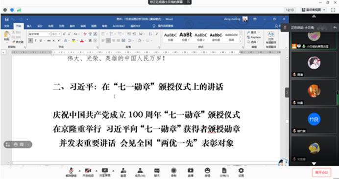 (通讯员 李慧/文 王瑞林/) 为庆祝中国共产党成立一百周年,提升我院研究生政治理论素养,坚持推动以习近平新时代中国特色社会主义思想武装头脑,进一步增强“四个意识”,坚定“四个自信”,做到“两个维护”,202176日,我院指导督促研究生各班举办政治理论学习主题班会。