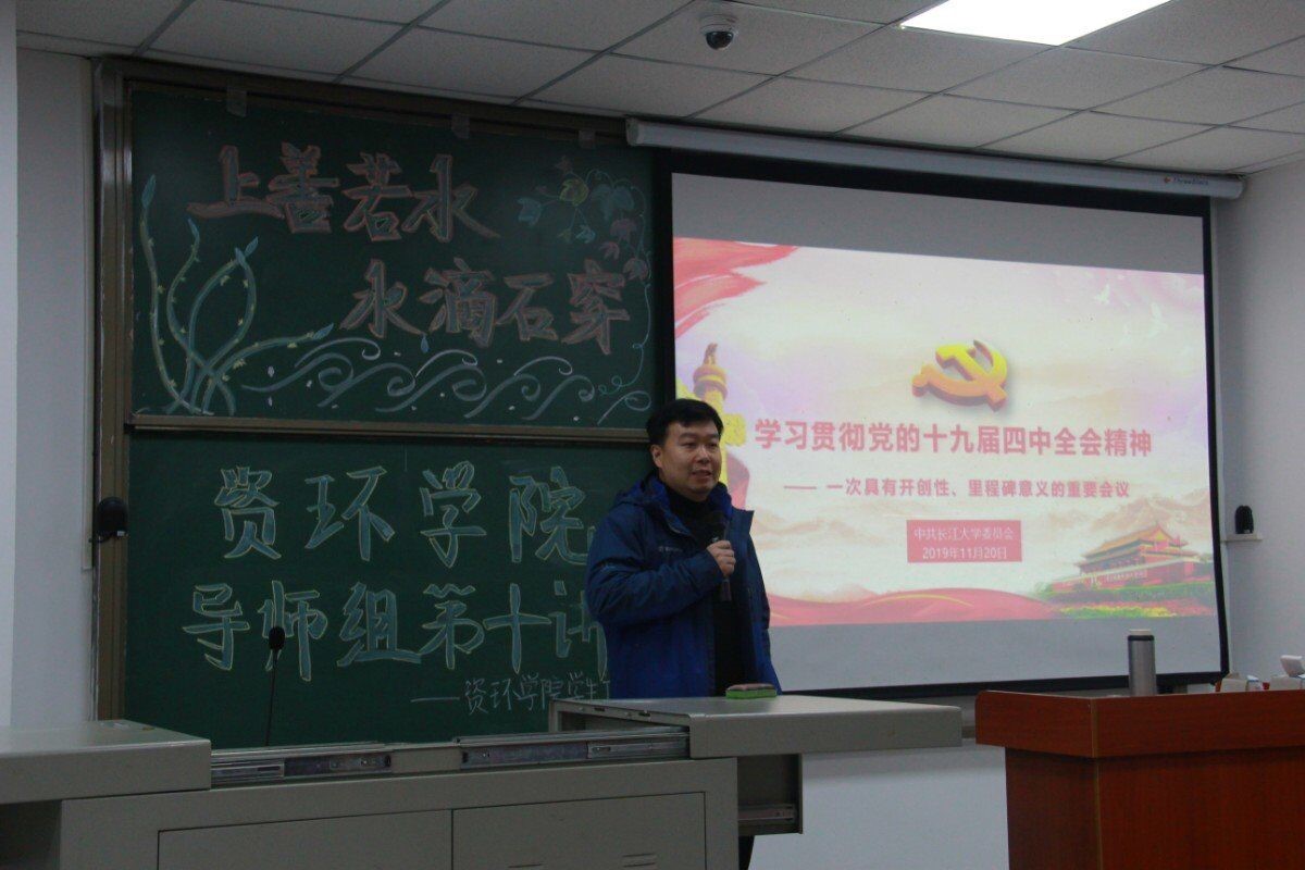 (通讯员 皮文 图/文) 12月4日,19:00,资环学院党委书记张科同志于教学楼B104为全体19级新生开展了一场以“上善若水,水滴石穿”为主题的党课培训,会议由史心宇同志主持。