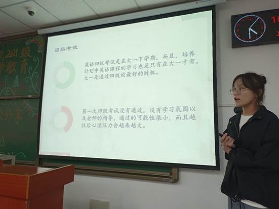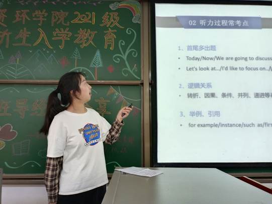 四级是每个大学生都要通过的一项考试,而其中的听力部分又是同学们很难攻克的一道关卡,环科类22102班的班导沈佳怡就针对四级听力开展了具体的分析。同时,面对长战线的复习和短时间的速成,她提出了不同的学习方法。沈佳怡的讲解让现场所有人,尤其是高考没有考听力的部分同学受益匪浅。