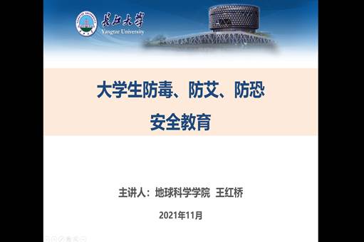 然后,由地科学院辅导员王红桥老师向大家介绍大学生防毒、防艾滋、防恐安全教育问题。王红桥老师重点介绍了三个方面:毒品预防、艾滋病预防、反恐应急教育。她向全体同学反复强调人的生命只有一次,幸福快乐掌握在自己手里,为了自己和爱你的人,树立安全防范意识,珍惜生命,远离毒艾恐,关注安全。