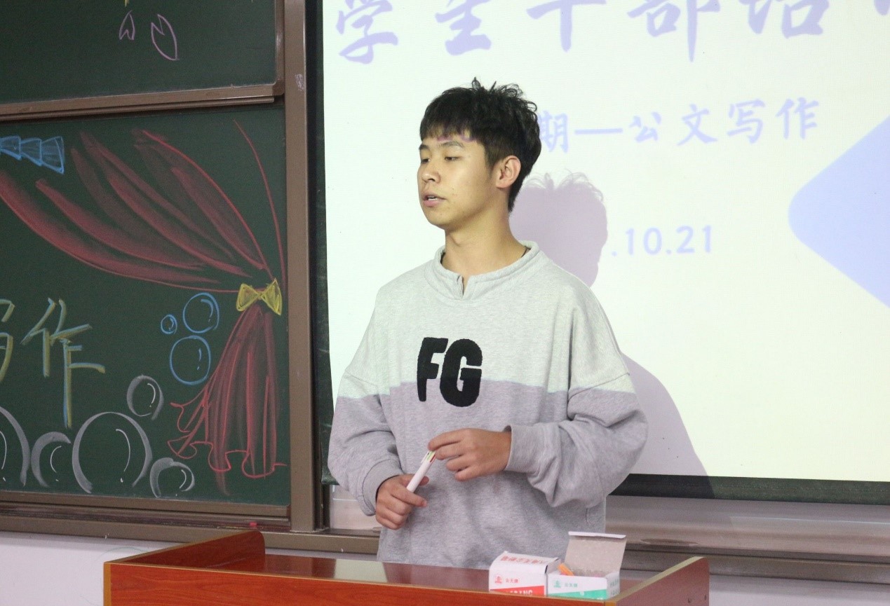 (通讯员 贾贺然 图/文)为提高资环学院团委学生会全体干部公文写作的能力,保证日后工作能够顺利开展。资环学院于2022年3月18日下午2点在武教A105举行了开云官方网页版官网团委学生会本学期的第一次例会,由资环学院第十届团委学生会主席傅浩主持本次会议。