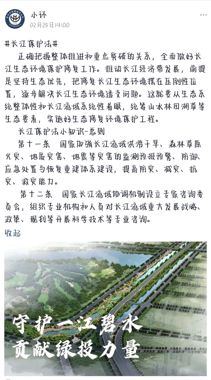 “普长江保护法,守一方净土心”知识竞赛告一段落,但是守护长江的行动还在继续。开云官方网页版官网呼吁大家积极关注、参与、支持长江保护宣传活动,主动宣传树立“尊重自然、顺应自然与保护自然”的生态文明理念,以实际行动自觉遵守长江保护法,承担守护母亲河的光荣使命,做长江保护的宣传者、捍卫者、践行者。