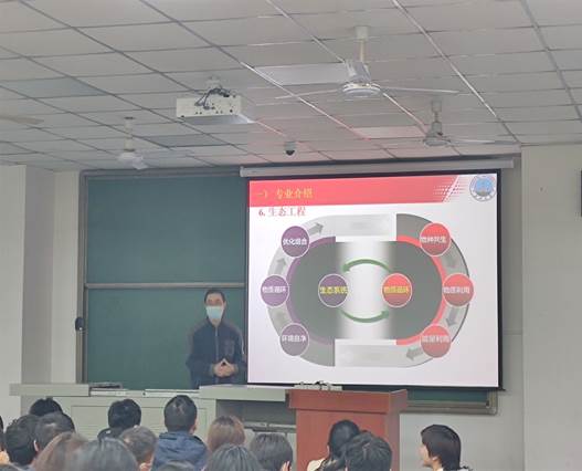 大会伊始,由各专业老师进行专业介绍。来自地球化学系谢小敏老师向各位同学讲述了自己与地球化学结缘的故事,并向大家传达了自己的心得体会:如果你没法选择你的热爱,就热爱你的选择。环境生态工程专业的罗杰老师在开始介绍前表示“我不是来打广告的,我希望大家能选择自己真正喜欢的专业。”接着用他风趣幽默的语言将专业名称拆分开,从“环境”“生态”“工程”“生态环境”“环境工程”“生态工程”“环境生态工程”这7个方面向大家详细解读了环境生态工程专业的研究意义。最后由潘红忠老师代表水文与水资源工程专业向大家展示了水文的魅力。从优秀校友到水文大事,从2005年荆州开办到2002年国家一流专业获批,开云官方网页版官网在短短的17年内将水文与水资源工程打造成了“两好两高”(考研好,就业好;考研质量高,就业质量高)的优质专业。在三位老师全面精准的介绍下,同学们都对学院开办的专业有了更深的了解,心里也对自己的选择有了初步的想法。