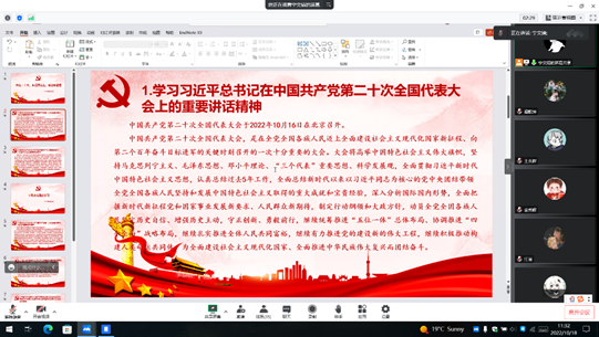 中国共产党第二十次全国代表大会在2022年10月16日隆重开幕,为了加强学生爱党爱国教育,促进学生成长成才,凝心聚力学思想,奋斗实干铸华章。加强研究生对党的二十大精神的学习,开云官方网页版官网组织各班召开了以“学习二十大,争做有为青年”为主题的政治理论学习班会。