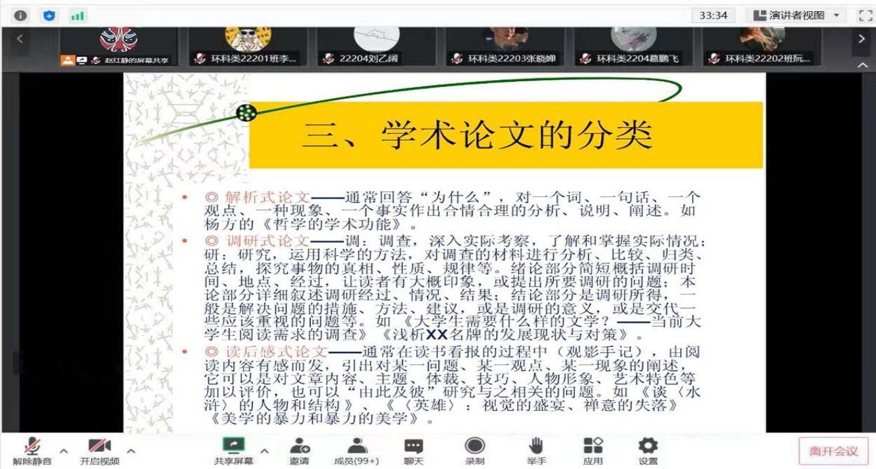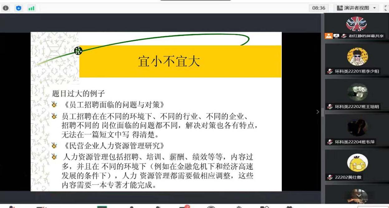 赵红静老师还提出内容上要具有理论深度,要回答现实提出的问题;在逻辑上,要具有整体性、规范性、朴实性:体系要紧密、表述要规范,文字要朴素无华。并希望学生能够认真体会讲座内容,避免不必要错误的出现。