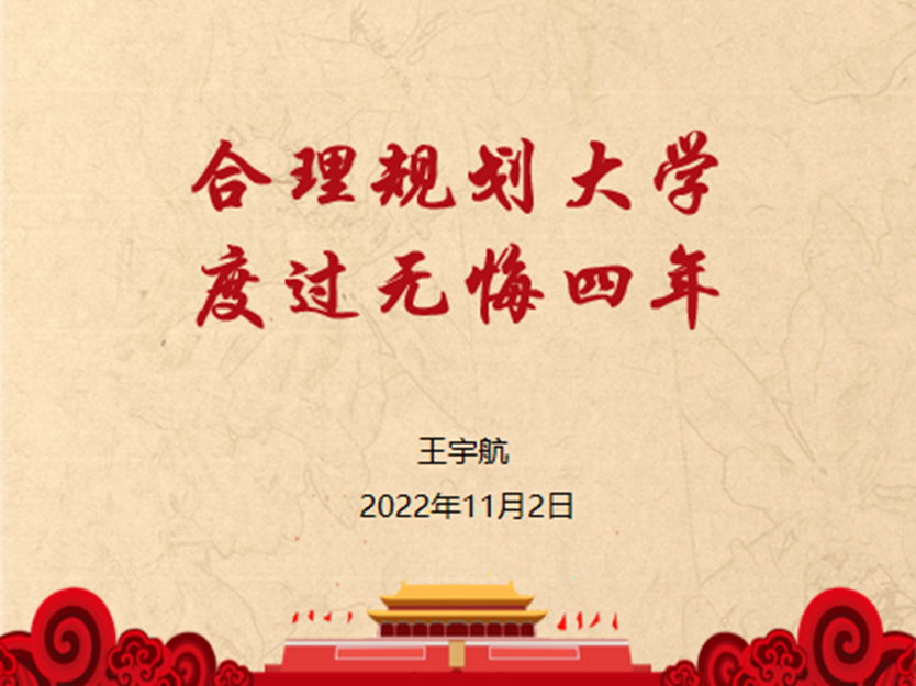 为了激励大家勇于尝试,王宇航从学院的角度向大家讲解了各级各类奖助学金的资助政策,学院希望并支持同学们能够在大学四年里发挥自己的专长,实现自己的目标与理想,成人成才,度过美好的大学四年。
