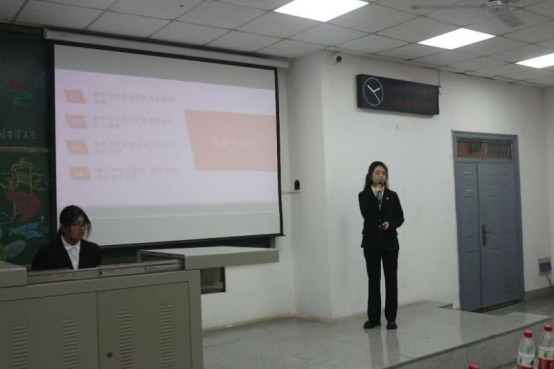 在接下来的主题团课展示环节,选手们结合团学精神,以及学院的实际情况和学生的思想需求,通过PPT形式展示了一堂主题团课。他们深入浅出地讲解了习近平新时代中国特色社会主义思想在当代大学生中的重要意义,激发了同学们的爱国情怀和责任意识。经过激烈的角逐,“一站到底”知识竞赛中,大二团支书队伍斩获一等奖,团课展示环节,黄若曦荣获一等奖。