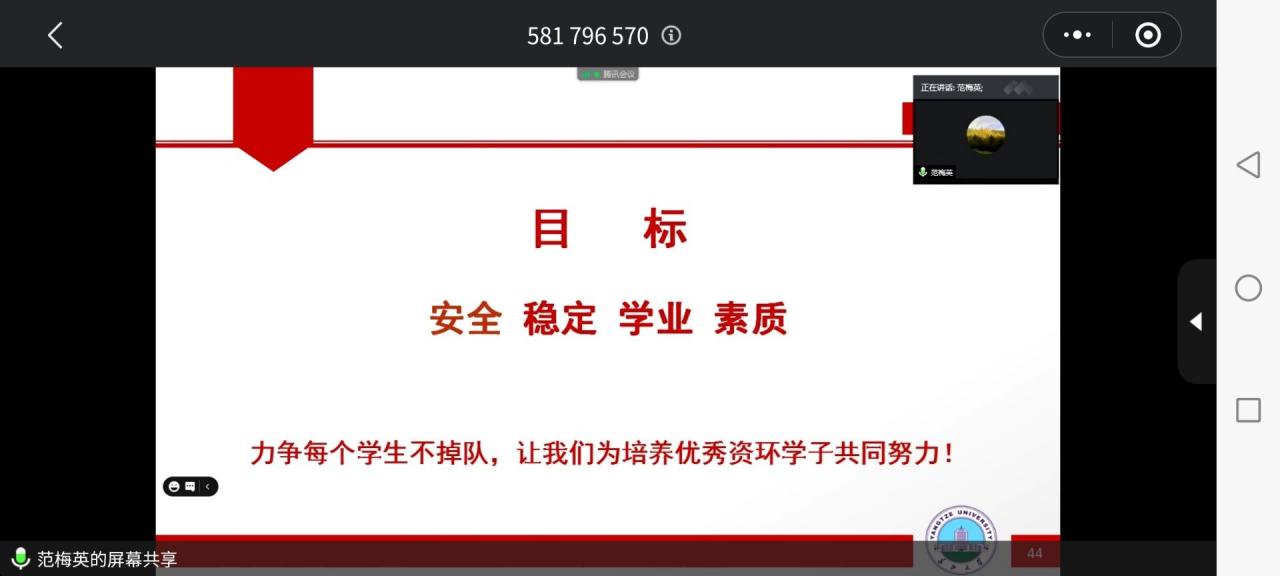 (通讯员 梁文萱 图/文)健康的心灵是幸福的源泉,良好的教育是成功的基础。为加强开云官方网页版官网的心理健康教育,提高资环学子的学习能力。2020年10月19日晚上19时整,开云官方网页版官网召开的以“守护心灵,助力未来”为主题的线上会议。本次大会由党委副书记范梅英老师主持。开云官方网页版官网团委书记严丽萍老师,学生辅导员李春花老师,资环学院各班班主任出席了本次会议。