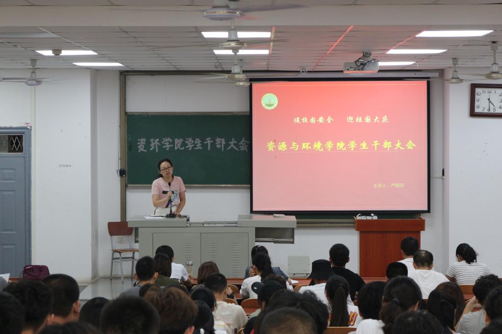 (通讯员 蔡依玲 图/文)针对9月19日上午突发的学生安全事件,资环学院于当日下午4点20分在武教B105紧急召开学生干部大会。本次大会由资环学院团委书记严丽萍主持,各班班长、团支书、安全委员、寝室长以及学生会全体成员参加。