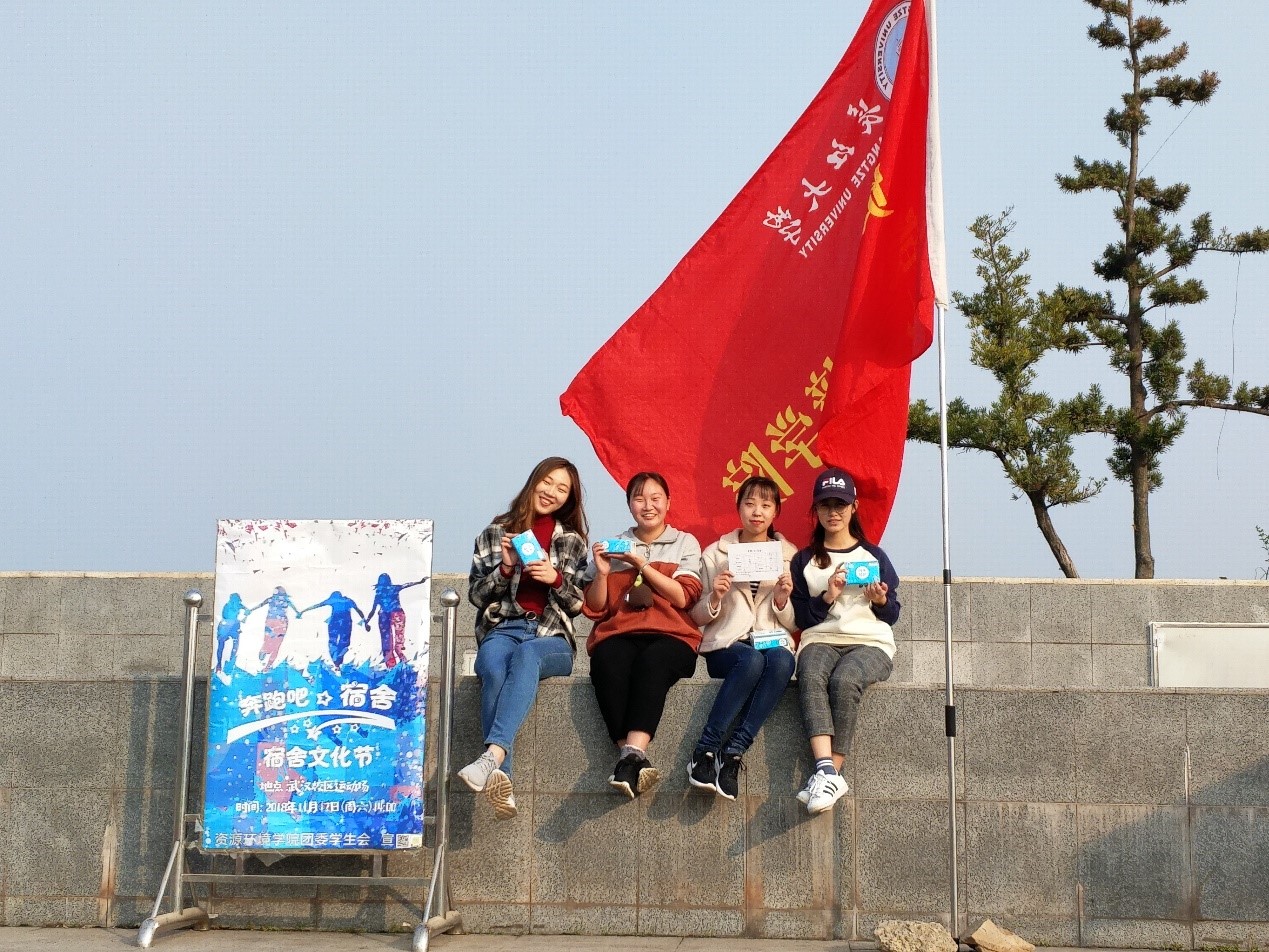 在工作上,宿舍成员都积极认真地为同学老师贡献自己的力量,都曾在班级、院级组织中担任要职。令狐苗苗同学现任班级学习委员一职;邓美玲同学曾担任资环学院团委学生会心育部部长一职,现任班级班长一职;罗雨婷同学现任资环学院团委副书记一职,也在省学联进行实习工作;宋雅坤同学曾担任资环学院团委学生会组织部副部长一职,现在活跃于各个院校级晚会中担任主持人。在院级、校级举办的一些活动中,也经常可以看到我们寝室成员的身影。