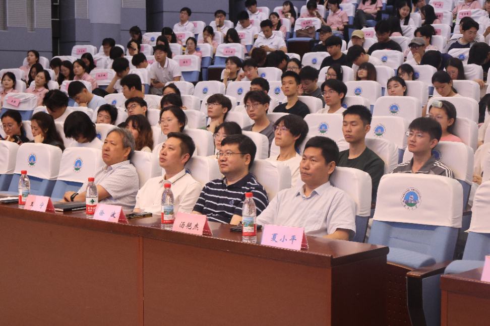 大会在庄严的国歌声中拉开帷幕。学院院长夏小平高度肯定了2025 届考研取得的优异成绩:录取率达 58.2%,再创历史新高,连续三年稳居全校第一,涌现出多个 "学霸班级"" 上岸宿舍 "等集体奋进典型。他指出,亮眼成绩的背后,是学院师生“苦干巧干”的奋斗缩影,是“比学赶帮超”浓厚考研氛围的生动写照,更是学院深耕“四维三率“育人体系的生动实践。夏院长从学科建设优势、导师团队力量、科研平台资源三个维度,向在场学子深度解读学院研究生培养政策,热忱鼓励同学们报考本院继续深造。