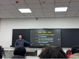 新学期第一天,我院有《构造地质学》等7门课程开启讲授。陶泽老师给资环大数据22301班级主讲的《构造地质学》课堂上还迎来了校长刘勇胜。听课过程中,刘校长认真观察课堂教学情况,了解课程设计、师生互动和学生学习状态。课后,刘勇胜与师生亲切交流,认真听取了老师们关于课程的建议和想法。他高度肯定了老师们严肃课堂纪律,授课内容紧跟时事热点的做法,鼓励他们在今后的教学中继续创新教学方法,提高教学效果[1]。
