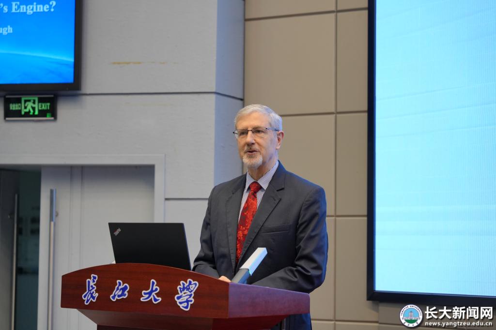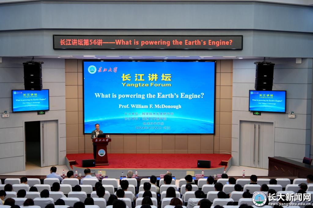 新闻网讯(通讯员 黄鹏 孙文静 刘子祺/摄)4月22日上午,“长江讲坛”第56讲在武汉校区石油科技大楼学术报告厅举行。日本东北大学、美国马里兰大学教授 William F.McDonough受邀为师生带来题为“ What is the powering the Earth’s Engine?”的学术报告。