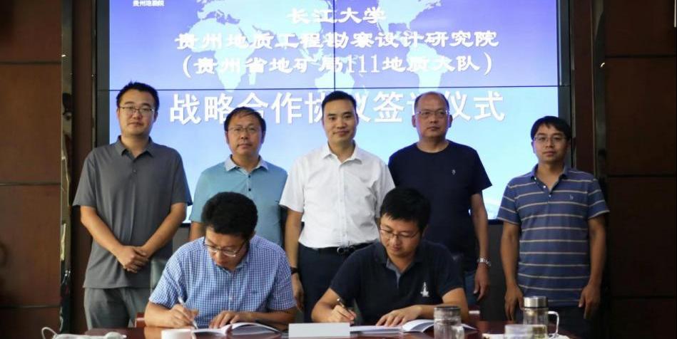 在贵州省地矿局111地质大队交流中,该单位党委副书记罗太近、总工程师王伟、总经理宋小庆等相关领导参加了会议。罗太近副书记对文志刚教授一行表示热烈欢迎,并介绍了111地质大队发展历程和业务优势。随后双方就科研项目合作、用人需求、人才培养等方面进行了详细交流,举行了学生就业实习基地签约仪式。