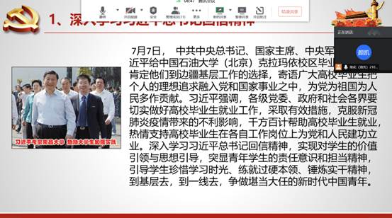 在本次主题班会活动开展过程中,许多支部采取了新颖的活动方式。如水文21902班的同学组织了一场线上演讲,攥写点赞抗疫人物解说稿等特色活动;环境21902班同学采取了宣誓与以歌表志的方式来开展特色班会;而水文21802班的同学们则是在线上研读了习近平总书记的回信并观看了《新闻联播》的录播视频,在此次学习中,他们意识到作为一名青年团员,应当持之以恒的用马克思主义和中国特色社会主义理论体系武装自己,将个人价值实现和集体利益结合在一起,为共产主义的实现贡献自己的一份力量。