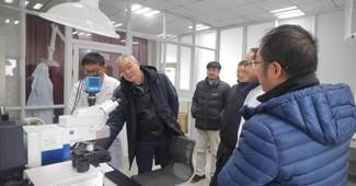 冯校长在油气包裹体实验室、Ro镜检实验室分别和预约做实验的老师进行交流,详细询问了预约的流程、做实验的相关记录等方面的情况。