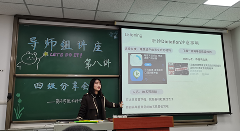 (通讯员 李如意 邱语嫣 杨帆 万紫韬/文 万紫韬 杨雨轩/图)为了引导大家更有效率地,更有目的地进行四级备考,2021321日晚七点,资环学院学生工作党支部开展了主题为“四级分享会”的导师组讲座第八讲。该讲座由林舒敏学姐、田润丰学长、廖靖倩学姐主讲,全体环科类20级同学参加。