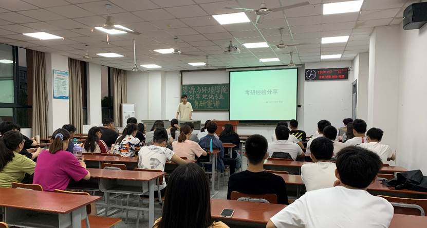 此次宣讲,大四同学们的考研经验分享干货满满,在全面的信息交流与融洽的现场气氛中,资环学院大三学子们收获颇多。相信他们在勇于付出,科学备考后都能如学长学姐们的祝福一般“一研为定”,“一战成硕”。
