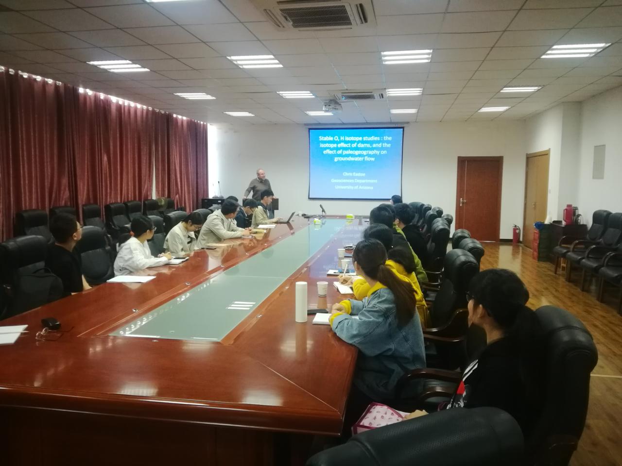 应开云官方网页版官网地球化学系吴越副教授邀请,美国亚利桑那大学Christopher J. Eastoe教授来我校做系列学术报告。报告从2019年到10月30-31日,历时2天。Chris教授主要讲述了一下几个方面的内容:(1)Cl同位素在蒸发岩、盆地卤水和MVT矿床中的应用;(2)块状硫化物矿床的S同位素研究;(3)水库的O-H同位素效应;(4)公元998-1510年的气候变化研究。Chris教授除了分享他的科学研究外,还与参会的师生学生分享了学习英语的方法。前来交流的师生表示通过讲座加深了对同位素研究手段的理解,也更深一步的认识到了同位素研究手段在各领域的应用前景。
