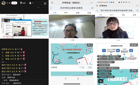 “停课不停学”, 2月9号全校开始网上教学。辅导员老师携手学生骨干成立课堂考勤小组,针对研究生、本科生的上课情况进行“每课一查、每日一汇、每周一报”,坚持每天将学生上课情况反馈给班主任,以利于班主任及时了解情况进行教育,对不具备上课条件的同学成立学生党员帮扶小组,为学生提供“一对多,多对多”的学习指导。