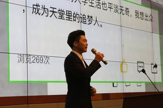 (图为胡奕明“资环之星”之“体育之星”答辩照片)