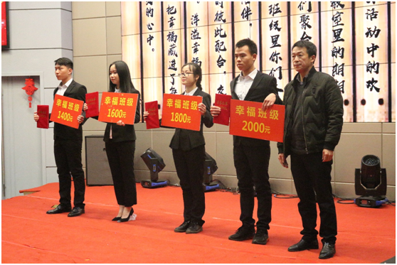 晚会进行了三轮颁奖,分别对2018年度评选出的“十佳寝室”、“幸福班级”和“资环之星”进行表彰。其中“幸福班级”、“资环之星”是资环学院在班级和个人层面设立的学院大奖,旨在树立标杆、发挥榜样的示范引领作用。获奖班级和个人获得荣誉证书和奖金。