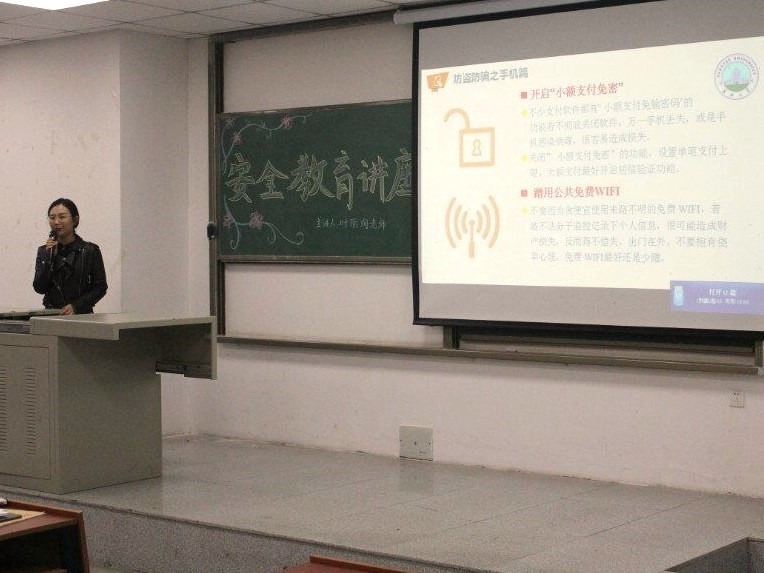 讲座的开展是为了创建平安校园,维护大学生人身、财产安全,提高大学生的安全防范意识与自我保护能力。叶老师围绕“四防”展开讲解,即强调大学生应注意防盗、防骗、防火及防溺水。随后,她指出在学习生活中,应时刻注意宿舍食堂等易发生安全隐患的地方。最后,叶老师用生活中几个实例给我们生活加以提醒和建议。为时半小时的讲座,同学们听得饶有兴趣。