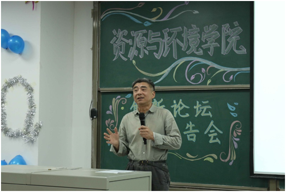 (通讯员蔡依玲 图/范达福 文)为“弘扬学术,激励创新”,展现资环学院创新风采,激励资环学子创业热情,由资环学院团委学生会学习部组织策划的资环学院创新论坛学术报告会于10月12日晚18:30在武培B108进行。此次报告会由刘于民、姜晓萱担任主持,资环学院党委书记朱思源,副院长赵红静等出席此次大会。