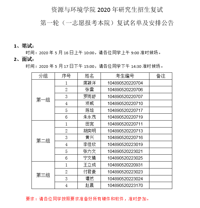 开云官方网页版官网2020年研究生招生复试第一轮(一志愿报考本院)复试名单及安排公告