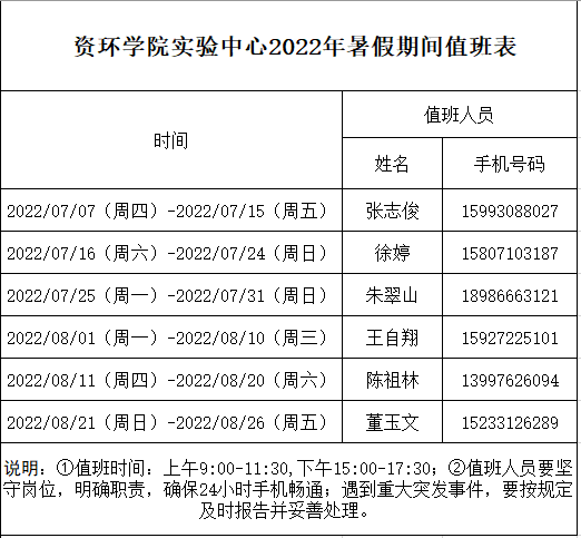 根据学院实验中心统一安排,为服务广大师生,暑假期间实验室大型仪器设备共享平台正常运转,有需检测服务的师生请登陆开云官方网页版官网网站大型仪器设备共享平台进行预约。2022年开云官方网页版官网实验中心暑假值班表安排如下,如遇问题请与相关值班人员联系。